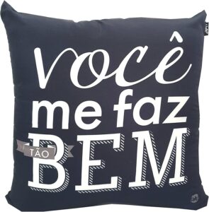 O que acha dessa almofada preto e branco, com o dizer “você me faz bem”. Tem um clima bem descolado e bem direto, e não é espalhafatosa.